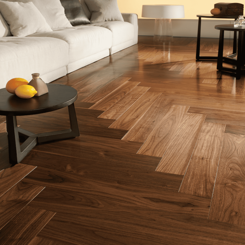 Parquet Noyer Contrecollé Bâton Rompu Vernis Naturel